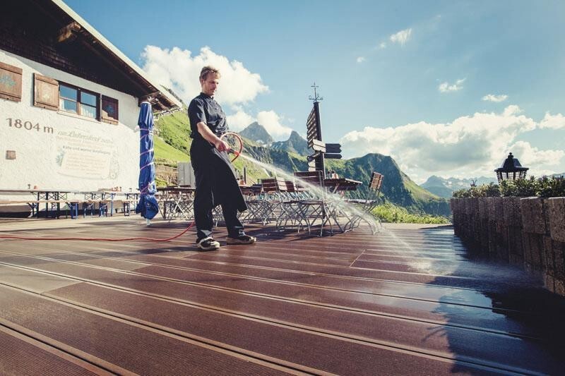 Stejně jako na horách je veškerá voda, která se zde vyskytuje, přirozeně odváděna k okrajům. To znamená, že na vaší terase i bez sklonu nezůstane téměř žádná.