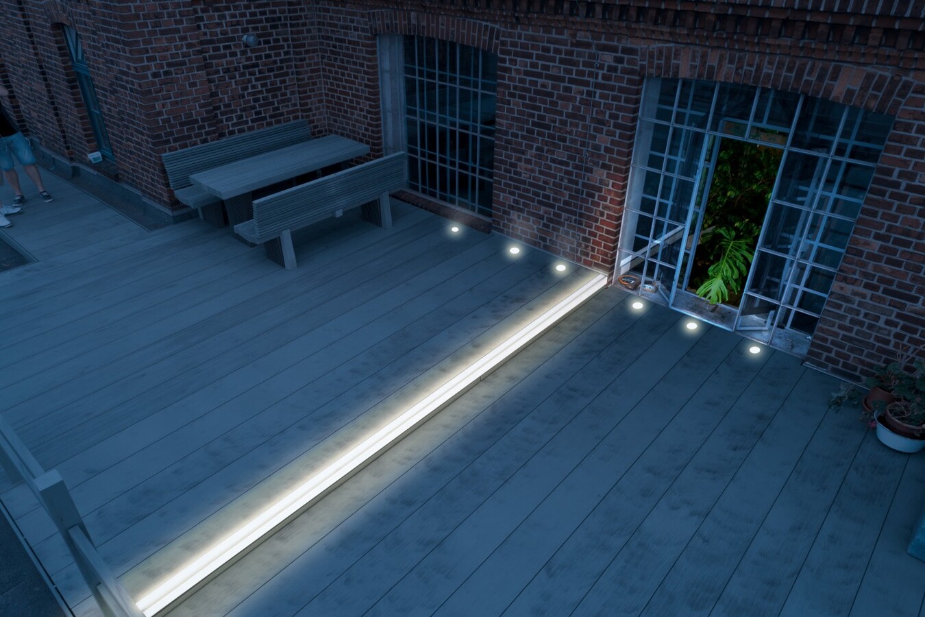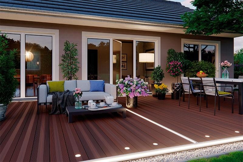 Chcete svou terasu obdivovat i za tmy? Využijte náladové světlo megalite. Kombinace lineárního osvětlení LED a bodového osvětlení LED je ideálním doplňkem našich teras megawood®. Systém megalite můžete instalovat vodorovně i svisle. Nové lineární osvětlení LED můžete individuálně zkrátit a upravit je tak pro terasu libovolné velikosti. Homogenní světelná páska vyzařuje příjemné teplé světlo. Spolu s bodovým osvětlením LED vytvoříte na terase individuální náladové osvětlení.