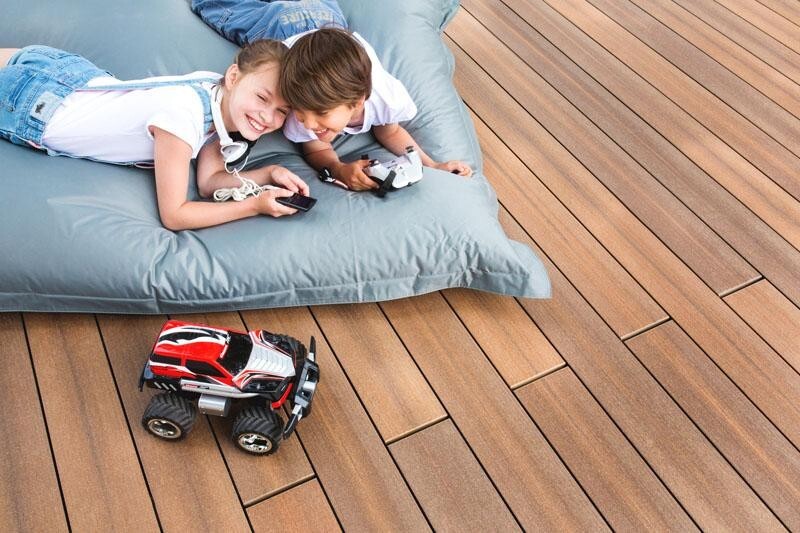 Homogenní zabarvený dřevěný materiál bez přidané vrstvy umělé hmoty zvládne i nejtěžší namáhání a je mimořádně odolný.Nově jsme přidali další tři barvy .